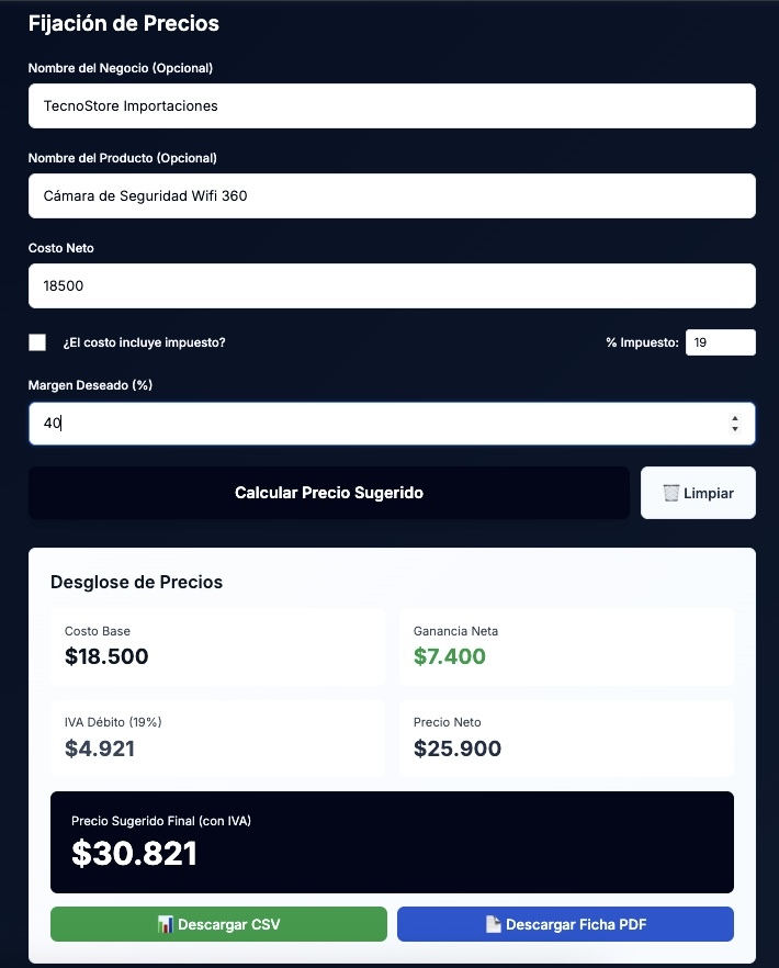 ✅ Protección de Ganancias: Cálculo exacto de precio final para asegurar tu margen deseado.